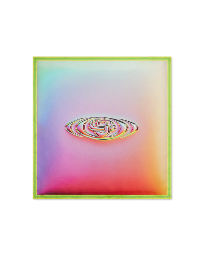 The Glass Gradient medium silk scarf is a square design featuring artwork born from the house's collaboration with Martin Naumann. Known for his work with gradients and texture effects, Naumann has reimagined the house logo through an experimental lens, creating an interplay of halftones and glass-like transparencies. Completed with a contrast border.