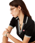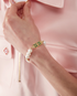 The Laurel pearl bracelet features the house's signature Laurel leaf artwork and diamond logo crafted from freshwater pearls, brass and hand-painted enamel. Completed with a gold-plated chain and lobster clasp fastening - this piece comes with a gift box, branded dust bag and product detail booklet.