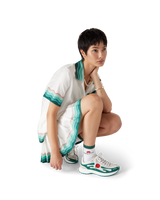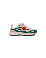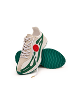 The Women's White and Green Stade Sneaker takes its name from the Ancient Greek measurement for the distance of a foot race, which later became the word for stadium. The style is inspired by performance running shoes and is a transportation of modern technology from ancient tradition, the codes of modern running with the lightweight mesh and glow print add to the modernity. The sole features sculptured curves, which is a reference to our Atlantis shoe and a stable of Casablanca design.