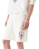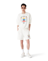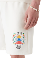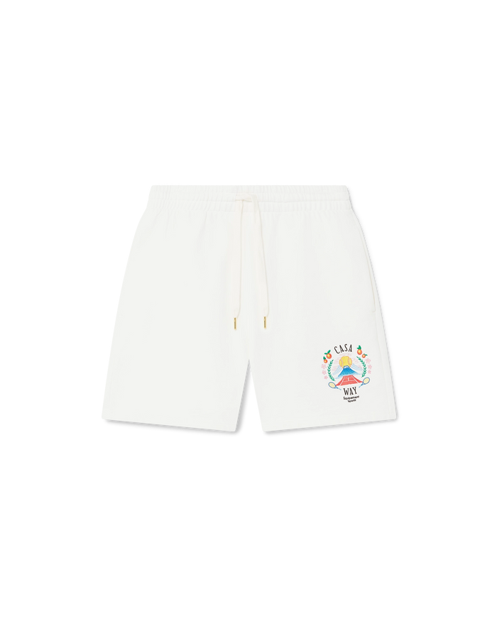 The Casa Way Mountain sweatshorts are a sportswear design crafted from organic cotton fabric featuring the house's seasonal artwork reinterpreted for this season. Completed with an elasticated waistband with gold-tipped drawstring fastening, in-seam pockets, and a back patch pocket.