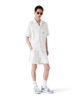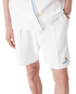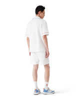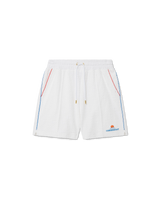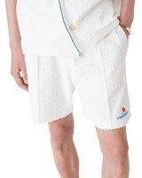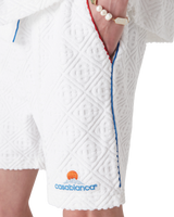 The Monogram towelling shorts are a classic design crafted from a monogram towelling fabric. Completed with an elasticated waistband, gold-tipped drawstring fastening, gold eyelets, pin tuck seams down the front, a back pocket, slanted front pockets, and piping details on the back and front pockets, and down the sides.
