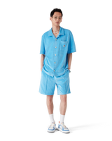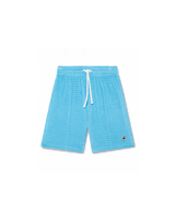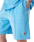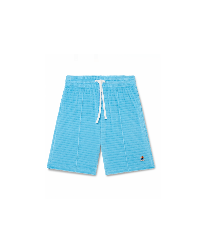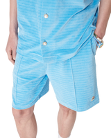 The velour stripe shorts are a classic design crafted from stripe velour fabric. Completed with an elasticised waistband, drawstring fastening, pin-tuck seams down the front, a back pocket with zip closure, and in-seam side pockets.