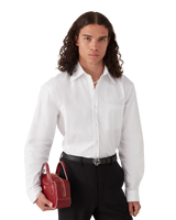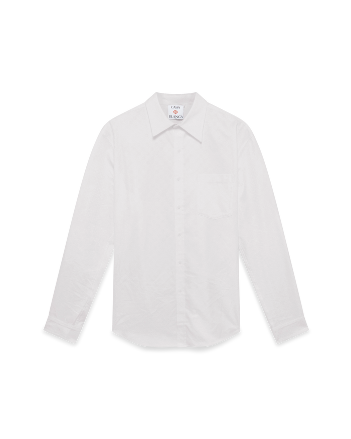 The cotton monogram jacquard Oxford shirt is a classic long-sleeve design. Completed with a breast pocket, a point collar, button closure, interlocking CC logo corozo buttons, and a classic curve hemline.