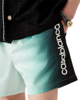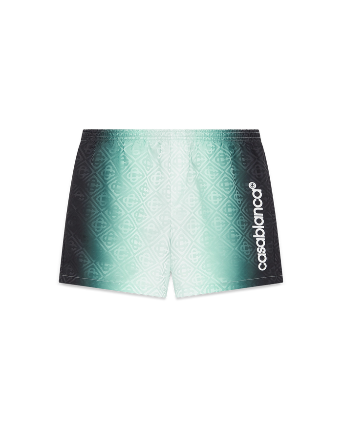 The gradient jacquard swim shorts are a classic swimwear design crafted from a gradient technical swim fabric, featuring the house's signature Casablanca logo down the side. Completed with an elasticated waistband, internal drawstring fastening, a lining, an internal pocket, and in-seam side pockets.