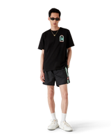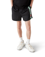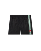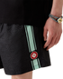 The jacquard stripe swim shorts are an all-over printed style crafted from a breathable polyester fabric. Completed with an elasticated waistband, an internal drawstring fastening, in-seam side pockets, an internal pocket, and a lining.