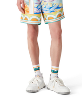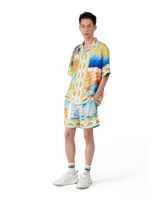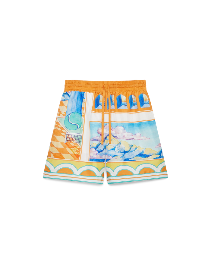 The Surreal Pool silk shorts are an all-over printed design crafted from silk twill fabric. Completed with an elasticated waistband, drawstring fastening, in-seam side pockets, edge detail on the hem, and a patch back pocket.