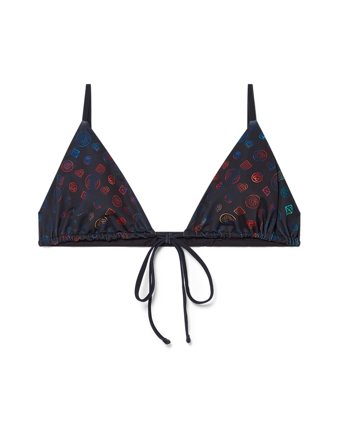 The monogram string bikini top is a classic triangular design featuring the house's multicolour Icon Monogram print. Completed with removable cup support, and string fastenings at the neck and back. Designed to be worn with its matching monogram bikini bottom.
