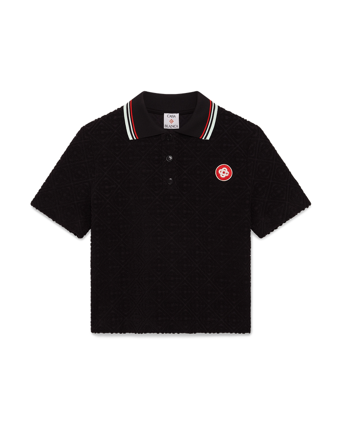 The monogram jacquard towelling polo shirt is a short-sleeve design crafted from monogram towelling fabric. Completed with button closure, interlocking CC logo corozo buttons, a CC logo patch, and a rib collar with stripe edge detail.