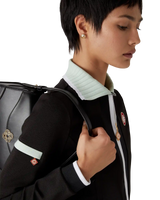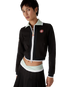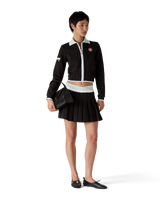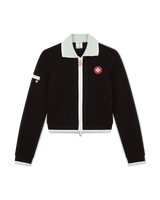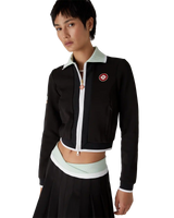 The viscose track jacket is a sportswear design crafted from viscose fabric. Completed with a zip closure, contrast rib collar, rib cuffs, hem and placket, and pockets.