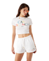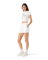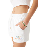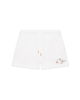 The stacked logo sweatshorts are a printed sportswear design crafted from organic cotton featuring the house's stacked logo in pastel colours on the left leg. Completed with an elasticised waistband, gold-tipped drawstring fastening, side pockets and a patch back pocket - this style falls above the knee.