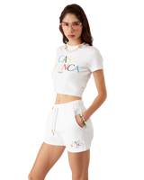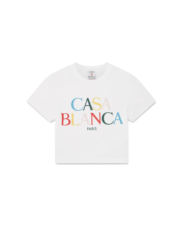 The stacked logo cropped t-shirt is a printed design crafted from pima cotton featuring the house's stacked logo in pastel colours across the chest. Completed with a classic crew neck - designed for a slim fit.