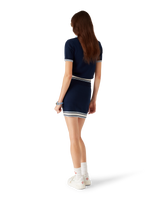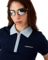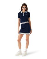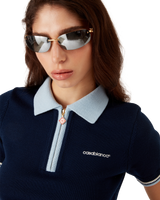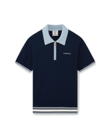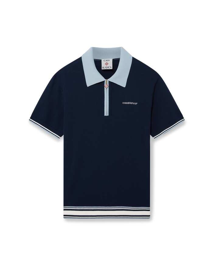 The merino knit tennis polo shirt is a short-sleeve design crafted from merino wool fabric. Completed with a zip closure, signature diamond logo zipper tab, stripe hem and cuffs details, a contrast rib collar and placket, and the house's Casablanca logo.