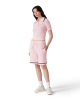The cotton mouliné polo shorts are a sportswear design crafted from mouliné cotton fabric. Completed with an elasticised waistband, drawstring fastening, slanted front pockets, a back pocket, and hem detail.