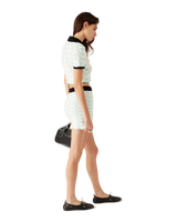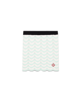 The cotton wave crochet mini skirt is a fitted design featuring the house's signature diamond logo crafted from crochet cotton fabric. Completed with a black contrast elasticised waistband and wave-inspired hemline.
