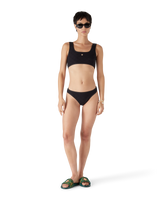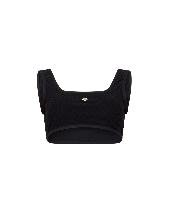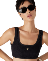 The monogram jacquard bikini top is crafted from a breathable technical swim fabric, featuring the house's gold-plated signature interlocking CC rivet. Completed with straps - this piece is designed to be worn with its matching bikini bottom.