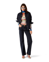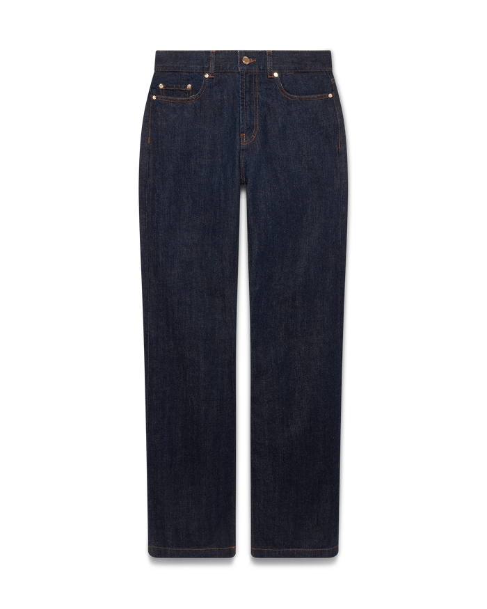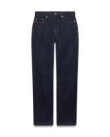 The raw denim selvedge jeans are a straight-leg design crafted from cotton denim fabric. Finished with embroidered interlocking CC logo, belt loops, front and back pockets, gold-plated branded hardware, and a zip closure. Intended to be worn with its coordinating shirt - designed for a slim fit.
