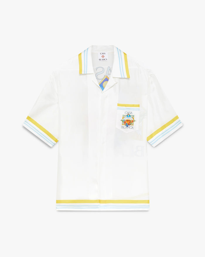 White Tennis Landscape Short Sleeve Silk Shirt