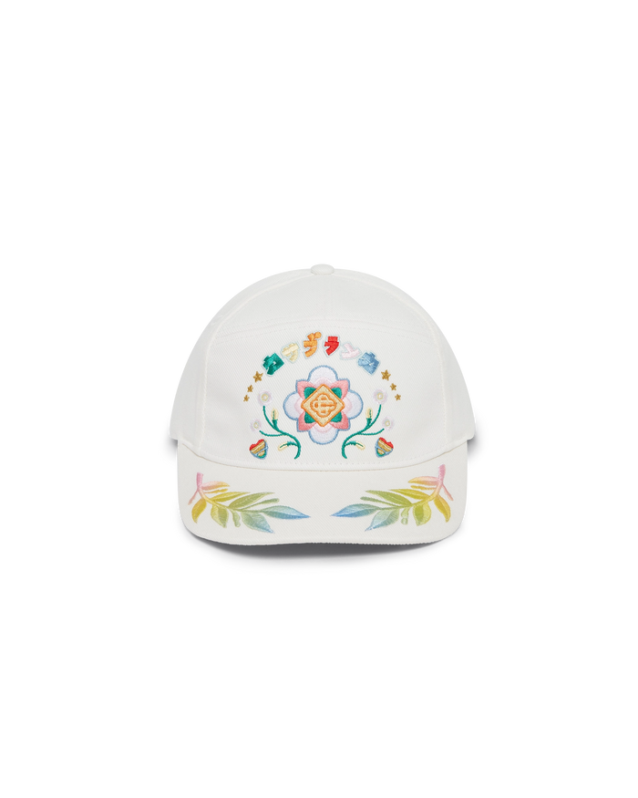 The seasonal gradient Laurel cap is a classic baseball style crafted from cotton twill fabric featuring this season's embroidered gradient artwork. Completed with a peak featuring Laurel leaf detail and gold-plated adjustable buckle.