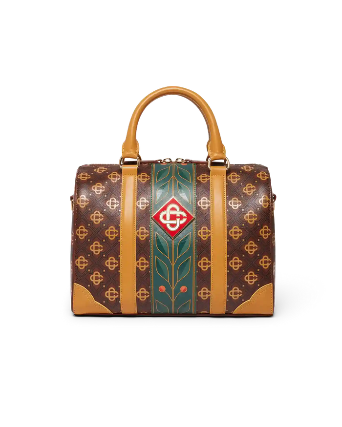 The brown mini monogram weekend bag is crafted from Italian leather, adorned with the house's signature diamond logo on the side. Completed with the house's signature Laurel artwork, grab handles, a zip closure, a shoulder strap, and an internal pocket. Supplied with a gift box, a branded dust bag, and a product detail handbook.