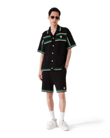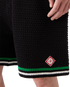 The tennis crochet shorts are a soft textured design crafted from a knitted cotton fabric, featuring the house's signature diamond logo. Finished with a contrast white rib elasticated waistband, drawstring fastening and edge detail, and green and white stripe detail on the hem.