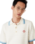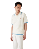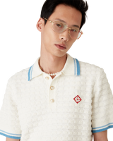 The boucle short-sleeve polo is a classic design crafted from cotton boucle fabric featuring the house's signature diamond logo. Completed with signature gold rim pearl buttons, a rib collar, cuffs, placket, and hem.