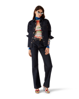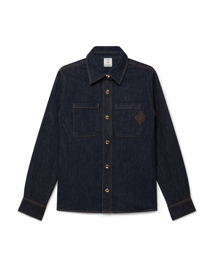 The raw denim shirt is a long-sleeve design crafted from cotton denim fabric. Completed with breast pockets, a point collar, button closure, branded gold-plated hardware, a box pleat in the back and an embroidered CC logo. Intended to be worn with its coordinating denim jeans.