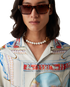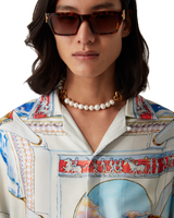 The Medium Pearl logo necklace places the Casablanca insignia across the neck, with the style intended for a snug fit. The necklace features freshwater pearls and a gold-plated lobster clasp and chain.