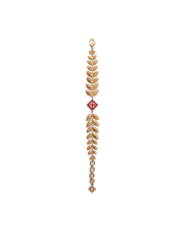 The gold Laurel leaf bracelet features the house's signature Laurel leaf artwork and diamond logo crafted from brass, and hand-painted enamel. Completed with a gold-plated chain and lobster clasp fastening - this piece comes with a gift box, branded dust bag and product detail booklet.