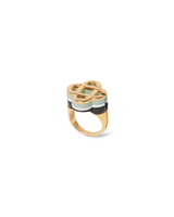 The hiking stacked ring features the Casablanca interlocking CC insignia in a stacked head. Completed with gold-plated shanks. This piece comes with a gift box, branded dust bag and product detail booklet.