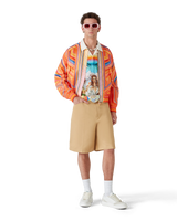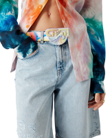 The Surf Trip belt is a multicoloured design featuring seasonal artwork inspired by vintage Malibu surf culture, crafted from calf leather. Completed with a painted brass buckle using typography from that era.
