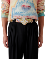The Low Rider belt is a multicoloured design referencing the pop colours and airbrushing painting techniques used on low rider cars. Completed with the Casablanca logo along the length of the belt and on the buckle, a spinner disc, and crystals.