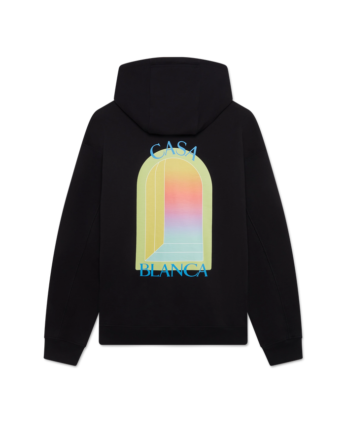 The Gradient Arch hooded sweatshirt is a printed classic design featuring the house's signature arch print in the season's gradient colourway. Completed with a hood, gold-tipped drawstring fastening, ribbed cuffs and hem, and a kangaroo pocket.