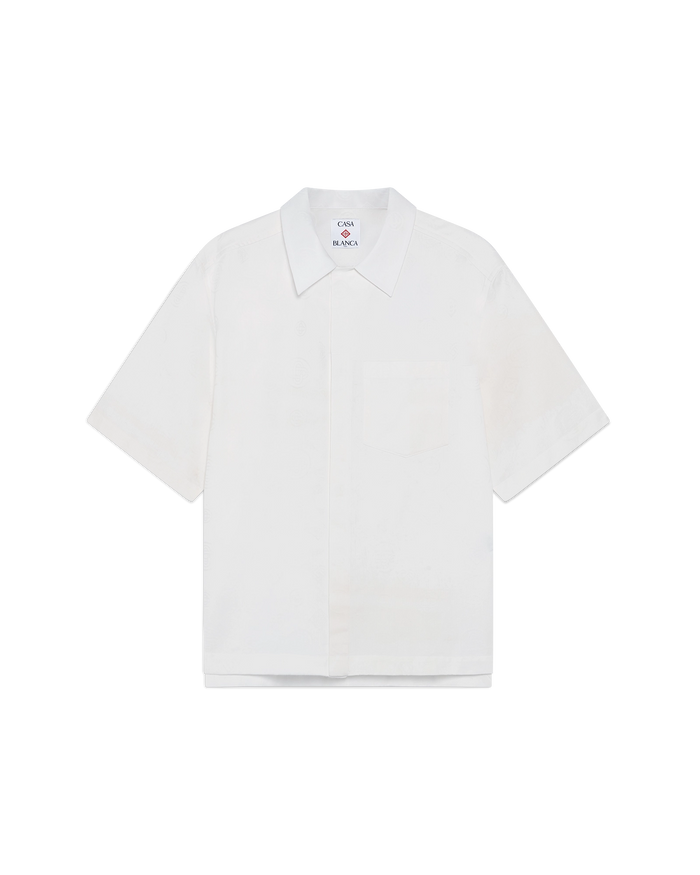 The white monogram short-sleeve shirt is a refined and elevated design featuring the house's Icon monogram pattern. Completed with a collar, interlocking CC logo corozo buttons, and a breast pocket.