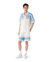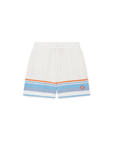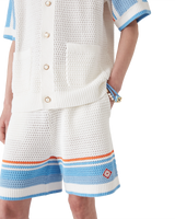 The tennis crochet shorts are a classic design crafted from crochet cotton fabric in soft natural colours featuring the house's signature diamond logo. Completed with an elasticised waistband, in-seam pockets, and striped hem detail.