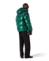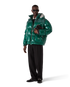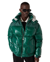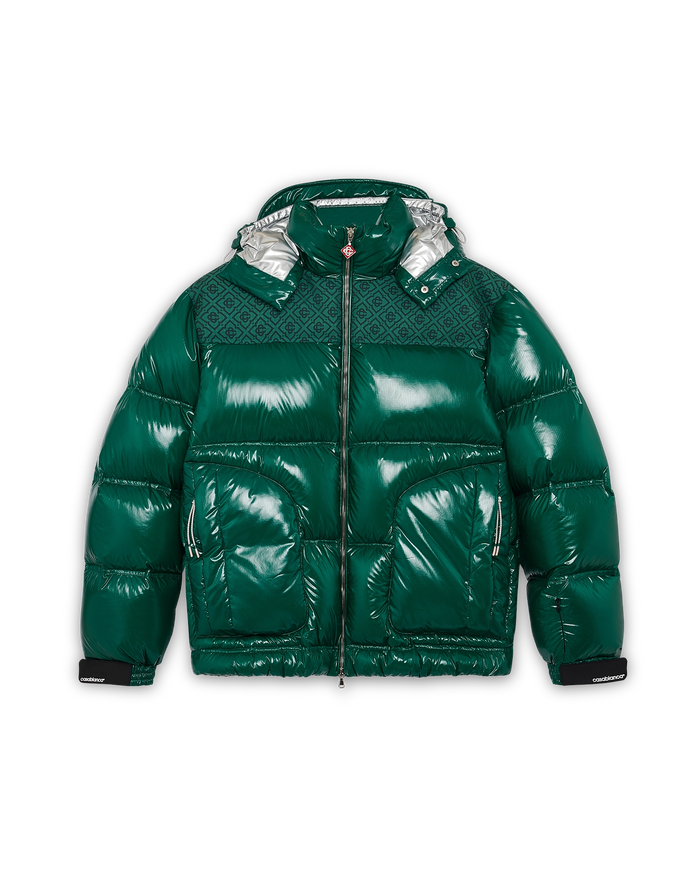 The nylon puffer jacket is a modern boxy outerwear design crafted from ripstop nylon fabric with down filling and contrasting monogram jacquard panel across the shoulders. Completed with a hood featuring CC logo toggles and drawstring fastenings, a stand-up collar providing extra warmth and protection against the elements, a zip closure with the house's signature diamond logo zipper tab, front pockets with zip closure, branded adjustable cuff straps, and elasticised hem and cuffs.
