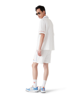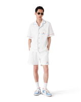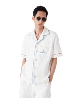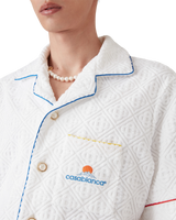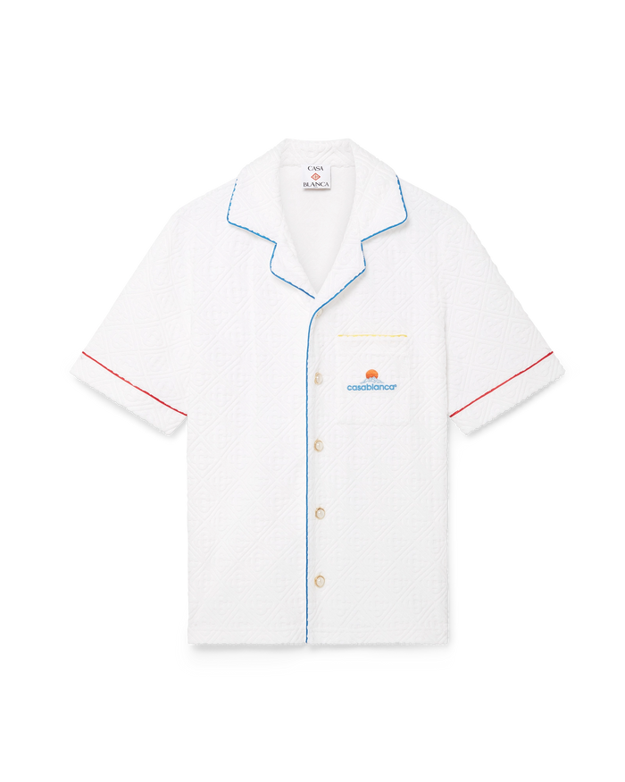 The monogram towelling short sleeve shirt is a classic design crafted from a monogrammed towelling fabric. Completed with a button closure, signature gold rim pearl buttons, a breast pocket, and piping detail on the collar, placket, cuffs, and breast pocket.