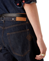 The Laurel selvedge denim jeans are a straight-leg design crafted from cotton denim fabric. Completed with belt loops, front and back pockets, zip closure, and gold-plated branded hardware.