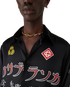 The Emblem long-sleeve silk shirt is a printed design featuring the season's artwork - we drew inspiration from the Japanese subculture of Bōsōzoku for one of our main themes. The contrast between graphic elements and text felt very Casablanca to us. We created our own take, incorporating phrases that describe the brand, like “looking at the beauty of the world.” The layout is unconventional, but the composition is carefully balanced, giving it a unique yet harmonious feel. Completed with a point collar, button closure, interlocking CC logo corozo buttons, gold rim enamel buttons at the cuffs, and at the collar.