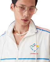 The Casa Sportif windbreaker jacket is a sportswear design crafted from a technical taffeta fabric, displaying the season's artwork inspired by Japan. Completed with front zip closure, a funnel neck, front pockets and elasticised cuffs and hem.