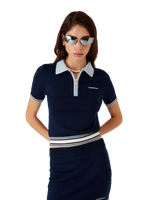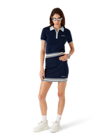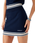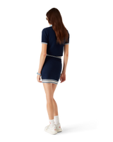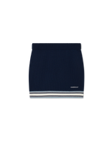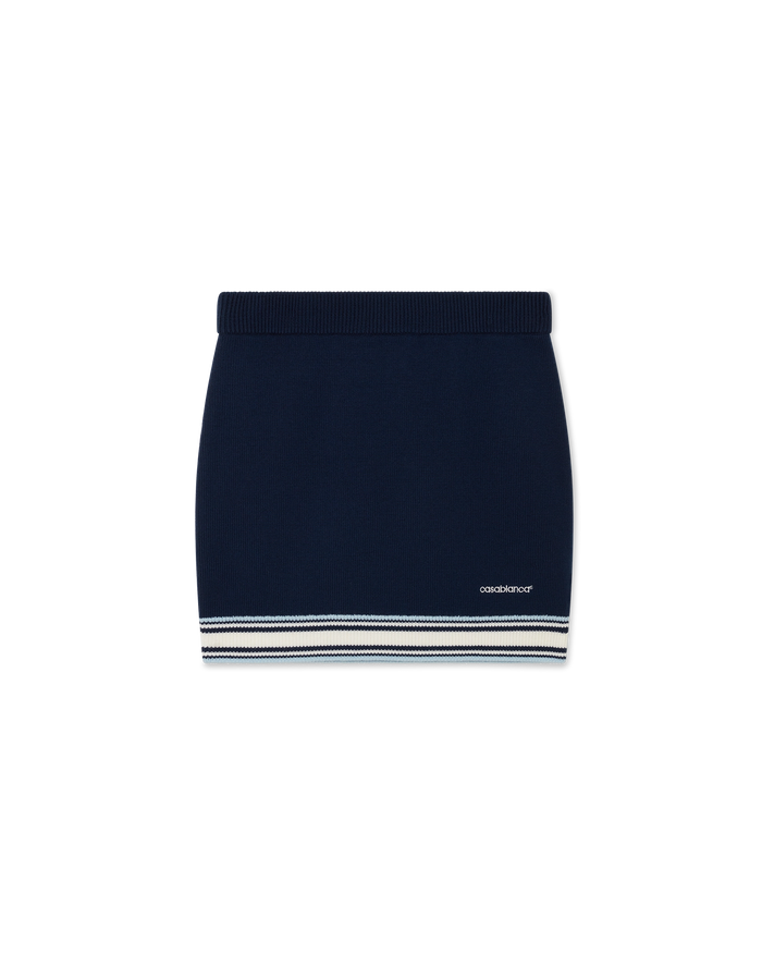 The merino knit tennis skirt is a knitted design crafted from merino wool fabric. Completed with an elasticised waistband, blue, white and black horizontal stripe hem detail, and the house's Casablanca logo.