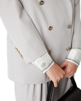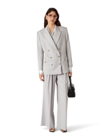 The wool oversized blazer is a double-breasted design inspired by Pat Riley; the transformative influence that the storied Lakers' coach had over '80s and '90s basketball style is reflected in the collection's tailored sportswear, crafted from virgin wool fabric. Completed with peak lapels, button closure, flat shank CC enamel buttons, a welt breast pocket, and front flap pockets.