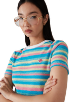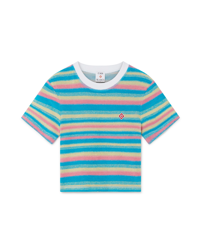 The stripe towelling top is a short-sleeve design crafted from towelling fabric and features the house's signature diamond logo. Completed with a classic crew neck.