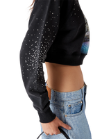 The La Prémonition crystal embellished denim shorts are a knee-length design with a relaxed silhouette crafted from denim fabric and all-over hotfix glass beading. Completed with a lining, front and back pockets, zip closure, and belt loops.