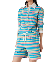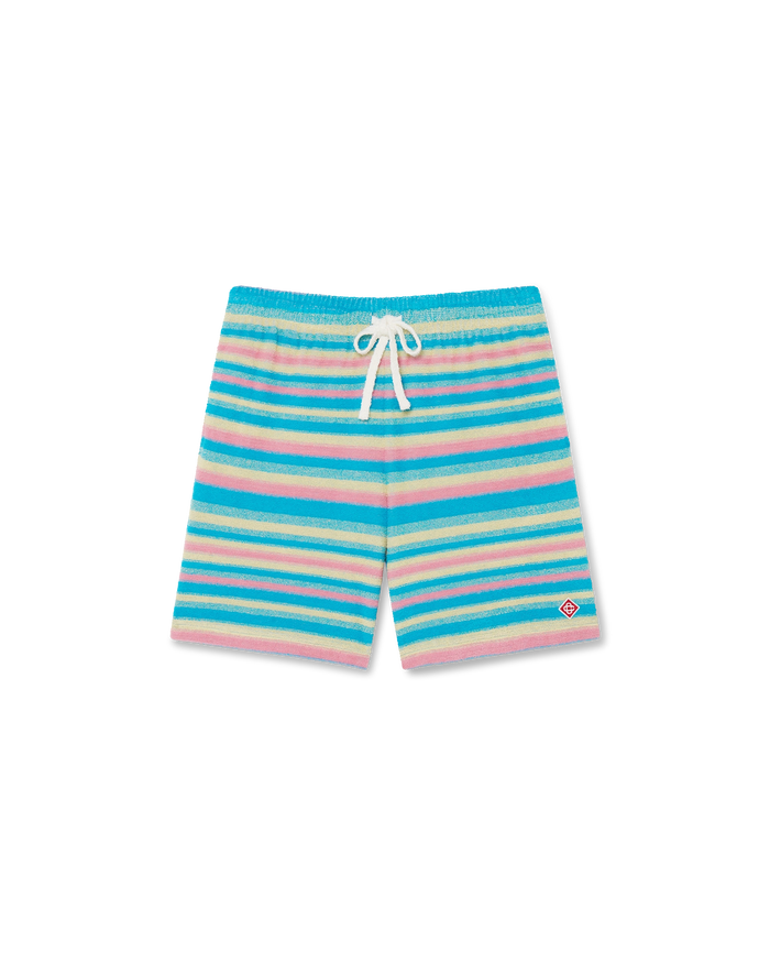 The stripe towelling shorts are a classic style crafted from towelling fabric and features the house's signature diamond logo. Completed with an elasticated waistband, drawstring fastening, in-seam side pockets, and a back patch pocket.