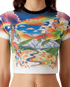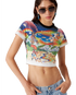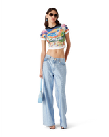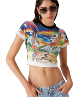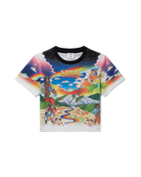 The La Musique cropped t-shirt is a short-sleeve design crafted from a printed cotton fabric featuring the season's artwork representing an ode to Bootsy Collins and iconic 70s funk records. Completed with a contrast rib crew neck. Designed to fit above the navel.