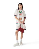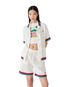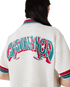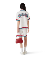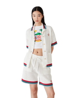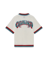 The gothic crochet shirt is a short-sleeve knitted design crafted from crochet cotton fabric and features the house's signature diamond logo. Completed with signature gold rim pearl buttons, front patch pockets, and striped edge detail on the collar, cuffs and hem.