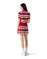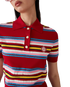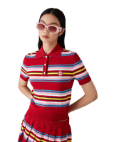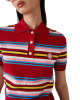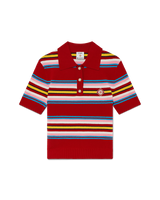 The stripe polo shirt is a short-sleeve design crafted from stripe knitted fabric featuring the house's signature diamond logo. Completed with signature gold rim pearl buttons, three-button placket, and rib cuffs, hem, collar and placket.