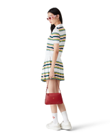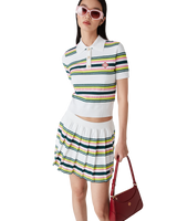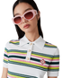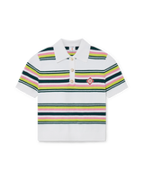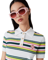 The stripe polo shirt is a short-sleeve design crafted from stripe knitted fabric featuring the house's signature diamond logo. Completed with signature gold rim pearl buttons, three-button placket, and rib cuffs, hem, collar and placket.