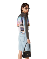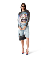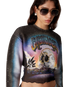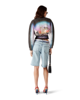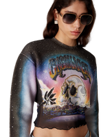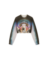 The La Prémonition cashmere blend cropped jumper is a long-sleeve short-style crafted from a printed wool fabric featuring the season's artwork, inspired by an eery vision of the skyline of LA at night, with UFO elements touching on vintage sci-fi inspiration. Completed with a classic rib crew neck and rib cuffs.