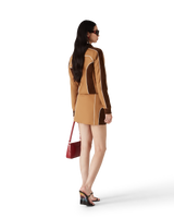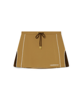 The Chenille panelled mini skirt is a sportswear-inspired design crafted from velour technical fabric and features the house's Casablanca logo. Completed with an elasticated waistband, gold-tipped drawstring fastening, and side panels with white piping details.